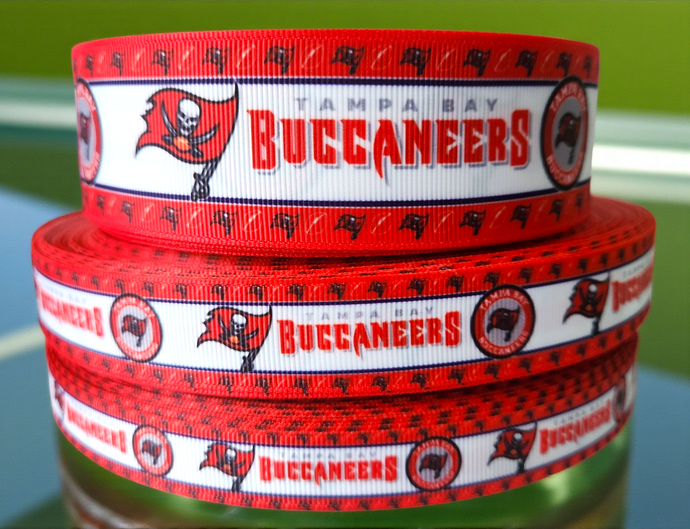 5/8", 7/8" & 1.5" Tampa Bay Buccaneers Football Ribbon. Football Grosgrain Ribbon Sports Team Ribbon